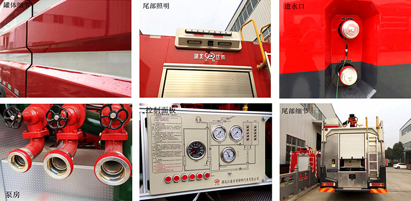 駕駛室頂部前端為長(zhǎng)排警燈,車身后配有24V/60W火場(chǎng)照明燈一只,車輛兩側(cè)上方各配有紅藍(lán)相配的爆閃燈,下方安裝安全標(biāo)志燈,乘員室、器材箱、 泵房?jī)?nèi)均裝有照明燈,加裝有100W警報(bào)器,回轉(zhuǎn)警燈開關(guān)、通訊設(shè)備預(yù)備接口。
