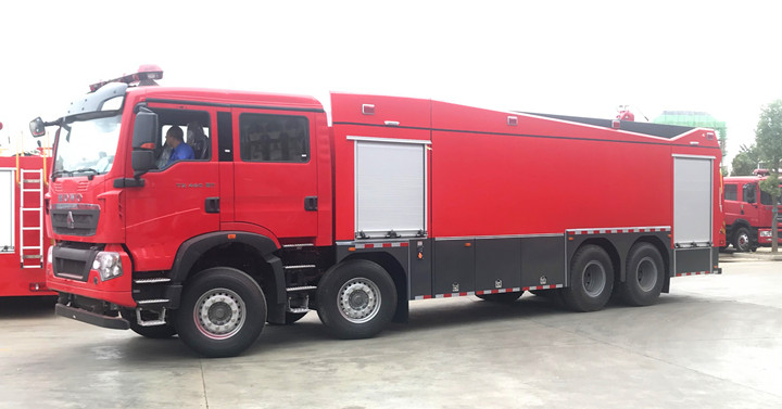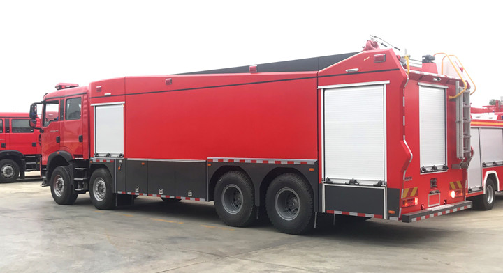 除了五十鈴消防車底盤與東風消防車底盤、以及小眾的福田、上汽紅巖、解放、北汽、陜汽底盤等等;國內越來越多的消防車改裝上裝企業(yè)采用中國重汽汕德卡、HOWO-T系底盤,中國重汽產品在消防展上逐步嶄露頭角,展示了中國重汽作為“進口替代”者的實力。特別是專職消防隊與企業(yè)消防隊選擇的多起來了。是的重汽消防車越來越暢銷;今天我們?yōu)榇蠹医榻B一款采購重汽T5G車身全新打造的一款前四后八泡沫消防車。
