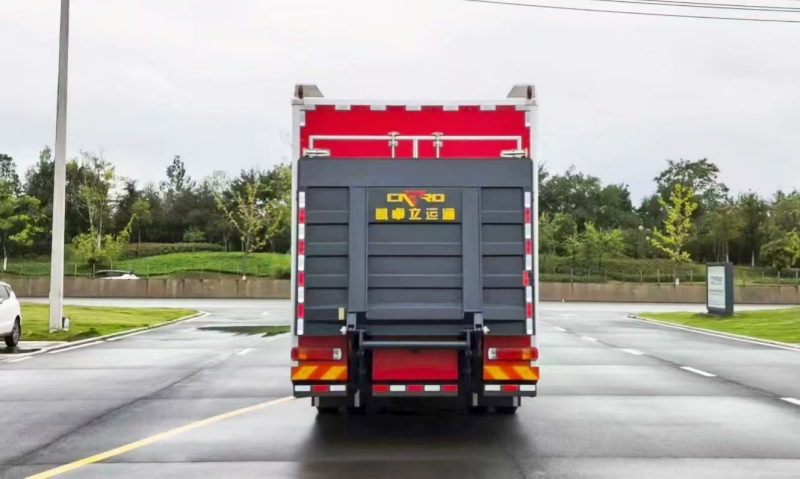 車輛采用標準化拉臂機構,支持多類型器材箱體快速裝卸。模塊箱內部以編織帶和絞繩器固定裝備,確保運輸穩(wěn)固性;箱體容積達8立方米,可容納22類常規(guī)救援設備,如消防水帶、破拆工具及生命探測儀,實現(xiàn)“一車多能”的靈活部署。