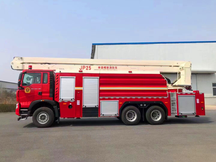 JP25米舉高噴射消防車采用重汽國六底盤,電液比例控制技術,整車在結(jié)構上分為上車和下車兩部分組成,上車和下車以回轉(zhuǎn)支承、中心回轉(zhuǎn)體為連接,通過液電控制系統(tǒng)將其緊密連成一體。下車主要由底盤、副車架及支腿、走臺板及器材箱總成;下車消防系統(tǒng)、罐體結(jié)構、取力系統(tǒng)等部分組成。上車主要有轉(zhuǎn)臺、臂架、上車消防水路、操作平臺等部分。整車由底盤側(cè)取力器驅(qū)動高壓泵為液壓系統(tǒng)提供動力,電氣系統(tǒng)與氣路系統(tǒng)配合實現(xiàn)取力操縱和油門控制,整車的安全保護措施由電氣系統(tǒng)實現(xiàn),并采用進口電氣元件,使其產(chǎn)品的實用性、穩(wěn)定性和安全可靠性達到國內(nèi)同類產(chǎn)品先進水平。