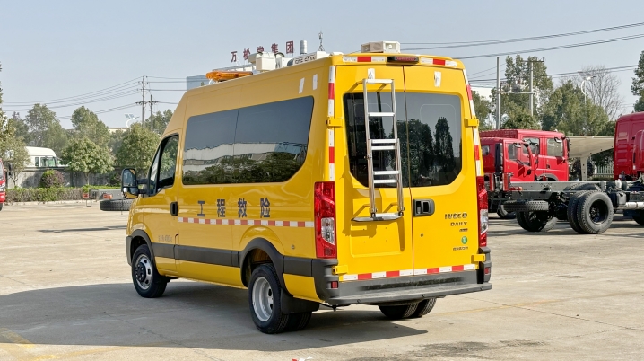 隨底盤選裝不帶前霧燈,復(fù)合懸架;隨原車選裝前進(jìn)氣格柵;該車配備發(fā)電機(jī),繞線盤,切割,焊接等專用工具;選裝標(biāo)志燈安裝位置,選裝車輛內(nèi)部布局,車輛頂部可全部或部分選裝設(shè)備平臺,空調(diào),升降照明燈,監(jiān)控設(shè)備,揚聲器;選裝后部爬梯;ABS系統(tǒng)控制器型號:BOSCH ABS9、BOSCH ESP9, ABS系統(tǒng)控制器生產(chǎn)企業(yè):BOSCH公司;ABS系統(tǒng)生產(chǎn)企業(yè):博世汽車部件(蘇州)有限公司,ABS系統(tǒng)型號:ESP9.隨原車選裝限速裝置,選裝限速裝置時最高車速100km/h;選裝F1CE8481K發(fā)動機(jī)時,最高車速140km/h;選裝F1AE8481G、F1AE8481D發(fā)動機(jī)時,最高車速130km/h;